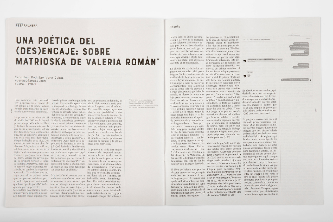 Reseña: Una poética del (des)encaje: sobre Matrioska de Valeria Román de Rodrigo Vera Cubas