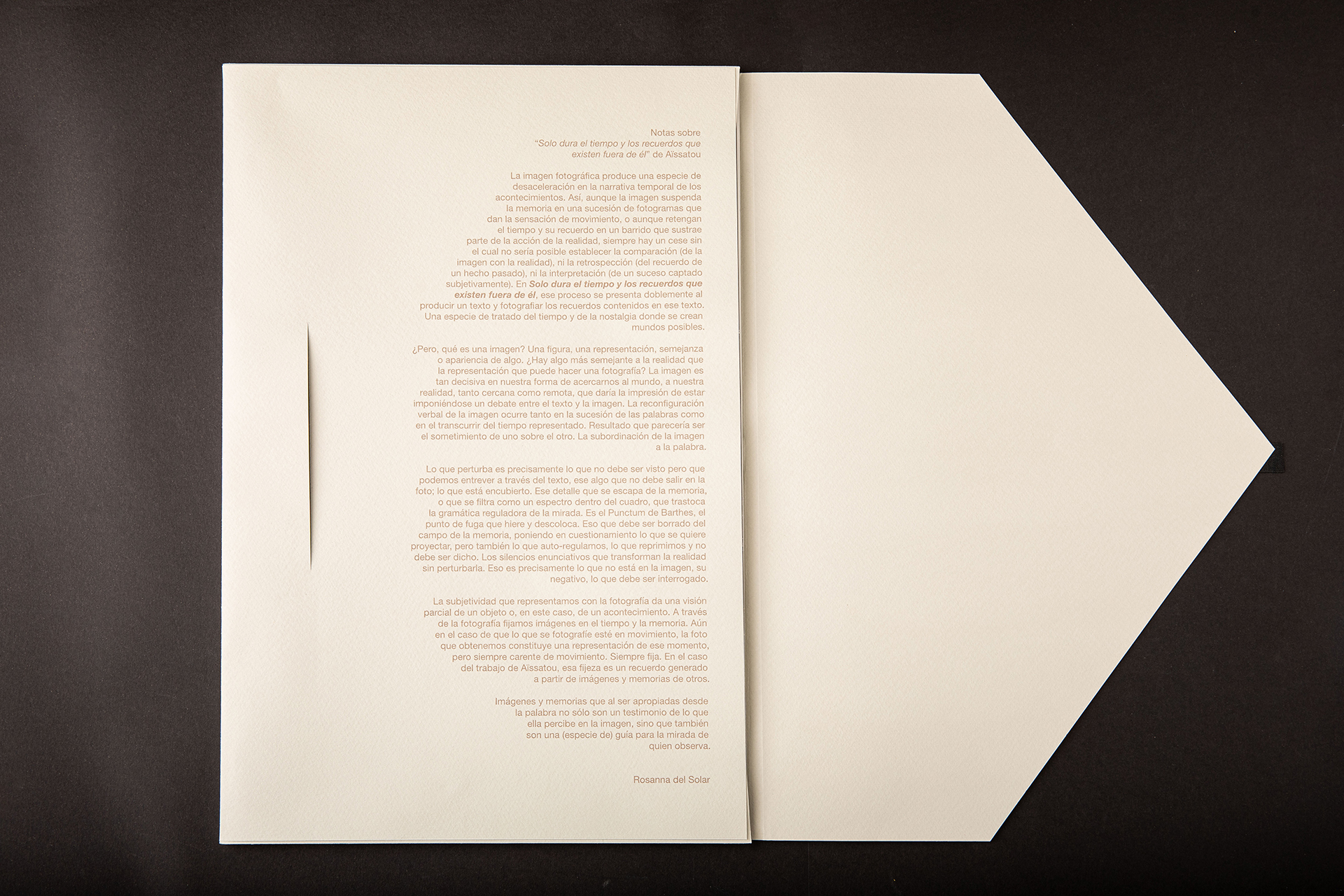 Solo dura el tiempo y los recuerdos que existen fuera de él explora como el poder de lo fotográfico crea la ilusión de que una imagen puede otorgar la certeza de un saber que de otro modo estaría fuera de alcance.